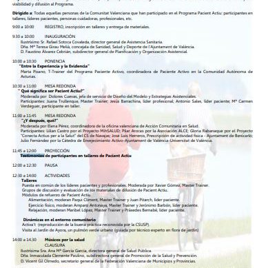 Paciente Activo pretende ayudar a las personas con una enfermedad crónica y a cuidadores de los mismos a adquirir un mejor autocuidado de su salud mediante talleres de formación. Son impartidos por pacientes con formación, que a su vez forman a más pacientes y personas cuidadoras, contando con el mayor apoyo de profesionales de la salud.